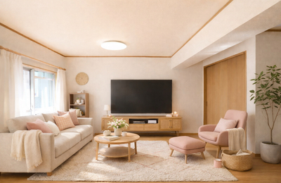 全室洋室の13・5帖の広々としたリビングにリノベーションしました。