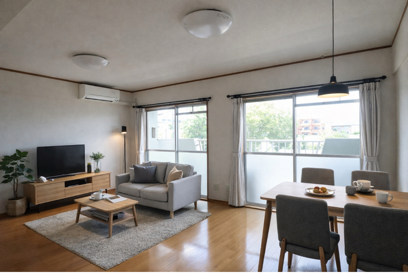 全室洋室の13・5帖の広々としたリビングにリノベーションしました。